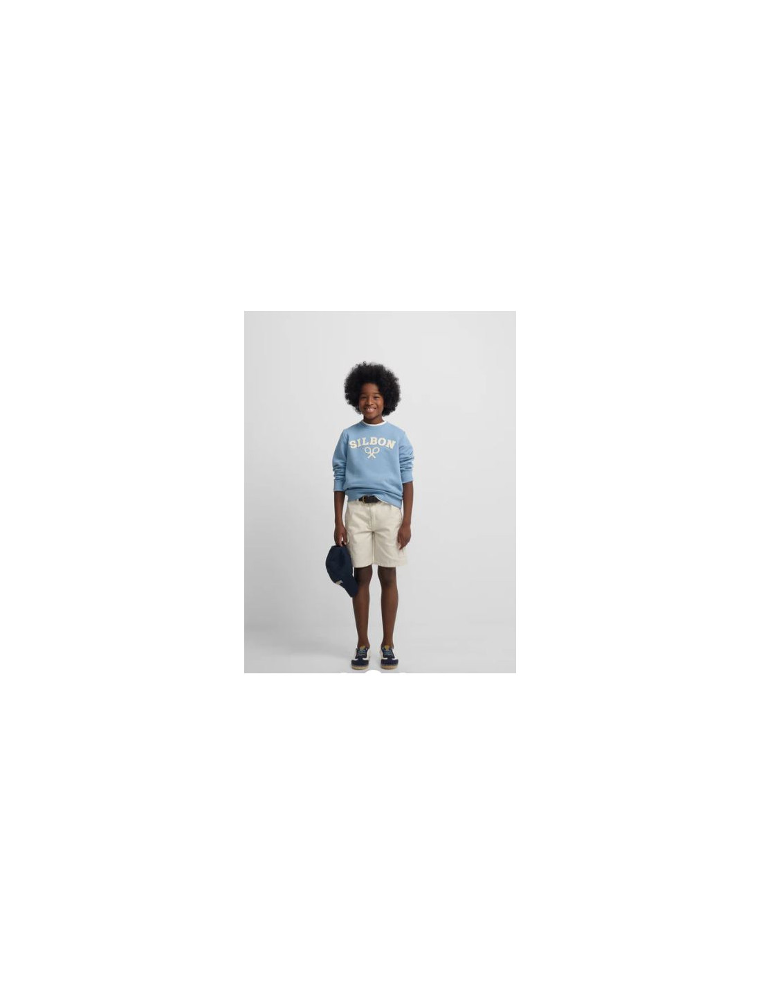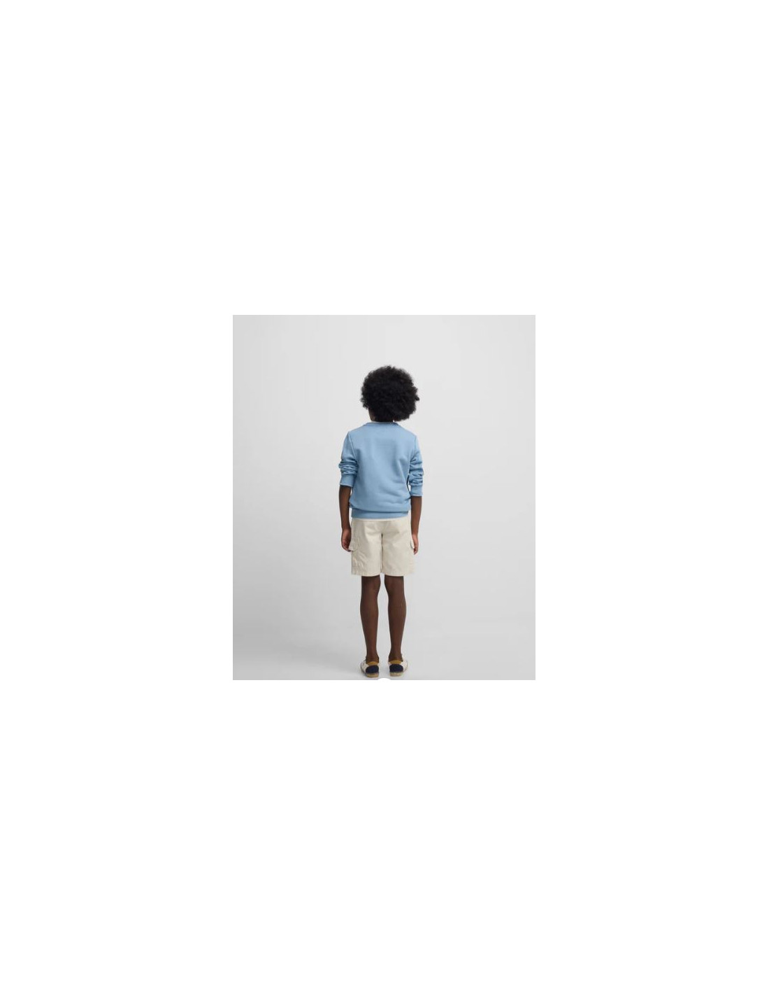 Camisa sport celeste de raya fina blanca, confeccionada en 100% algodón BCI de corte Regular fit. Presenta cuello button down, cierre con botones personalizados y manga larga de puño con botones. Cuenta con raquetas bordadas en el torso.